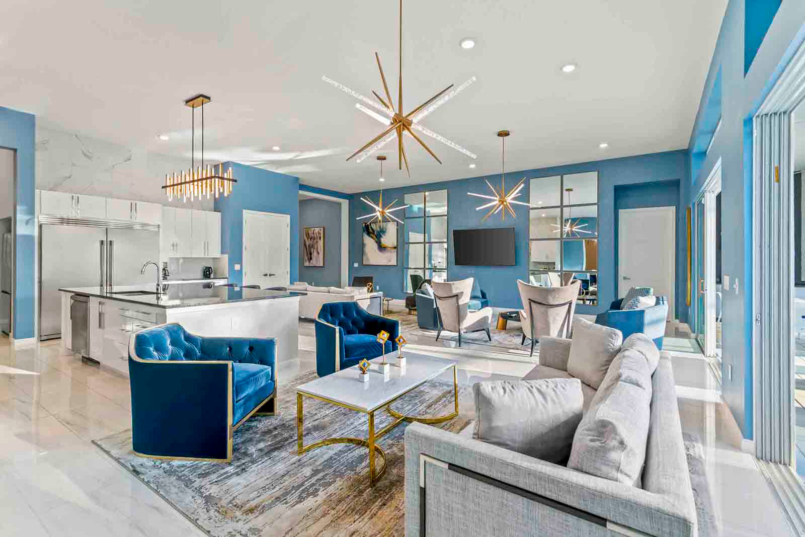 - Architecturally elegant recessed ceilings, featuring twelve chandeliers